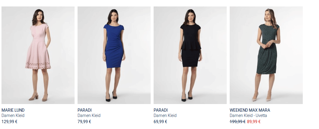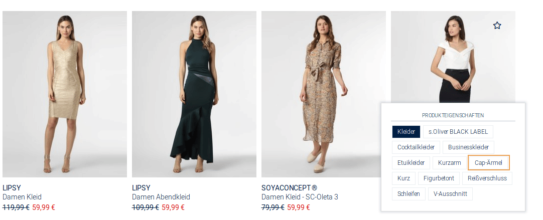 Passende Produkte zur ausgewählten Eigenschaft (Kleider mit Cap-Ärmeln) (Quelle: Screenshot von peek-und-cloppenburg.de)