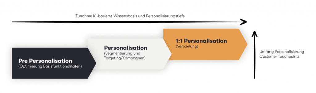 Mit jeder Personalisierungsstufe nimmt die Personalisierungstiefe sowie der Umfang an personalisierten Customer Touchpoints zu.