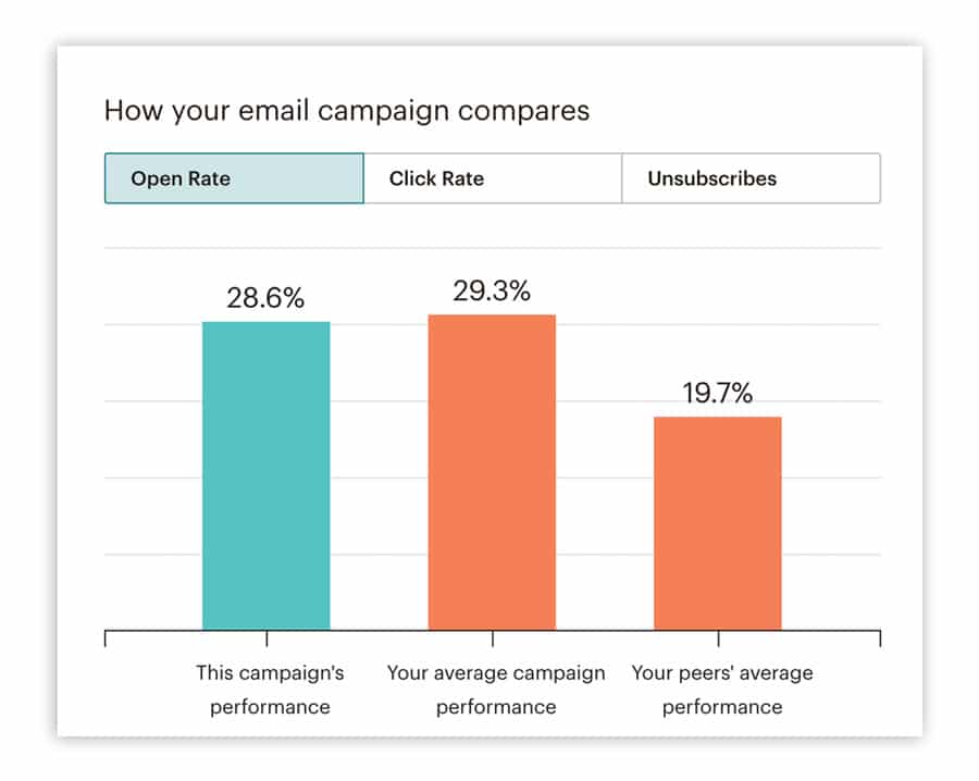 Beispiel für die Auswertung der Öffnungsrate im Vergleich zu Durchschnittswerten und denen ähnlicher Nutzer (Quelle: Screenshot Mailchimp)